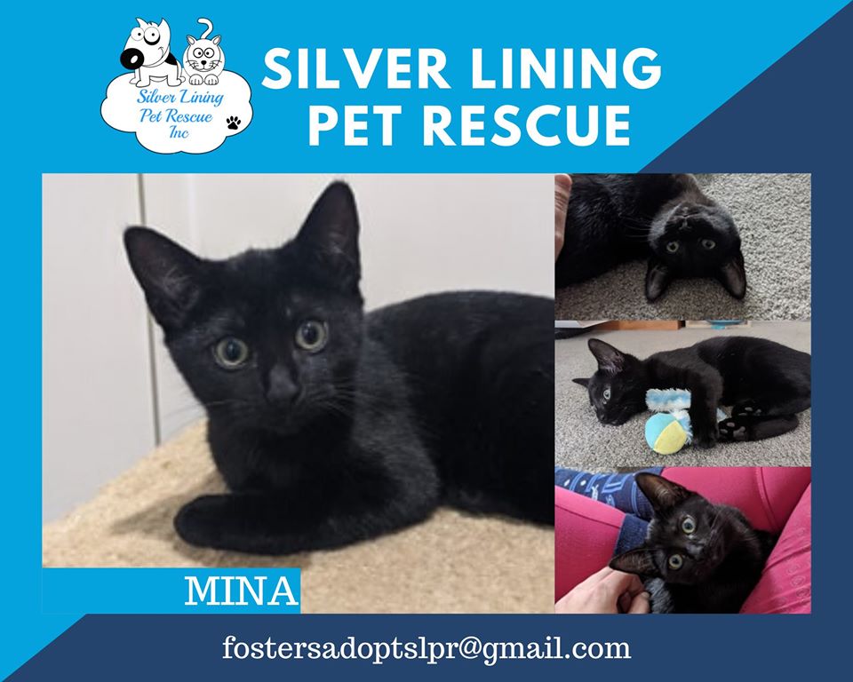 Hi I am Mina, I am the more timid of me and my brother, but don't let that fool you, it may take a little more than my brother to gain my trust, but once you do I am a true snuggle bum, and expect you to give me all the love and play time.