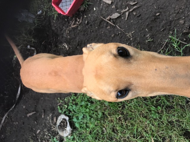 This young fellow deserves a home where he has lots of company, he really doesn't like being left on his own. He doesn't mind the company of other dogs, but he prefers to be with people. He would love a warm comfy bed & to become used to all the comfits a good home will bring. Like most grey hounds he doesn't know to sit, stay or even his name. He also doesn't understand the concept of treats, & actually won't take food from your hand, he only eats it when it is dropped on the ground.