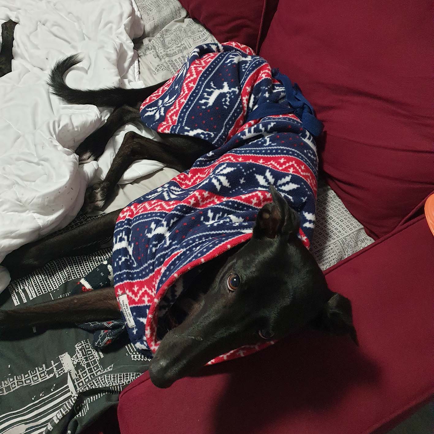 I need a family who will let me have access to both outside and inside. As a Greyhound I am thin skinned and need to sleep indoors and wear a jumper at night. I also am very social, so I do not cope well with being left alone for long periods of time. When my humans do go out, it is best that I am indoors as I can get anxious and dig in the backyard.