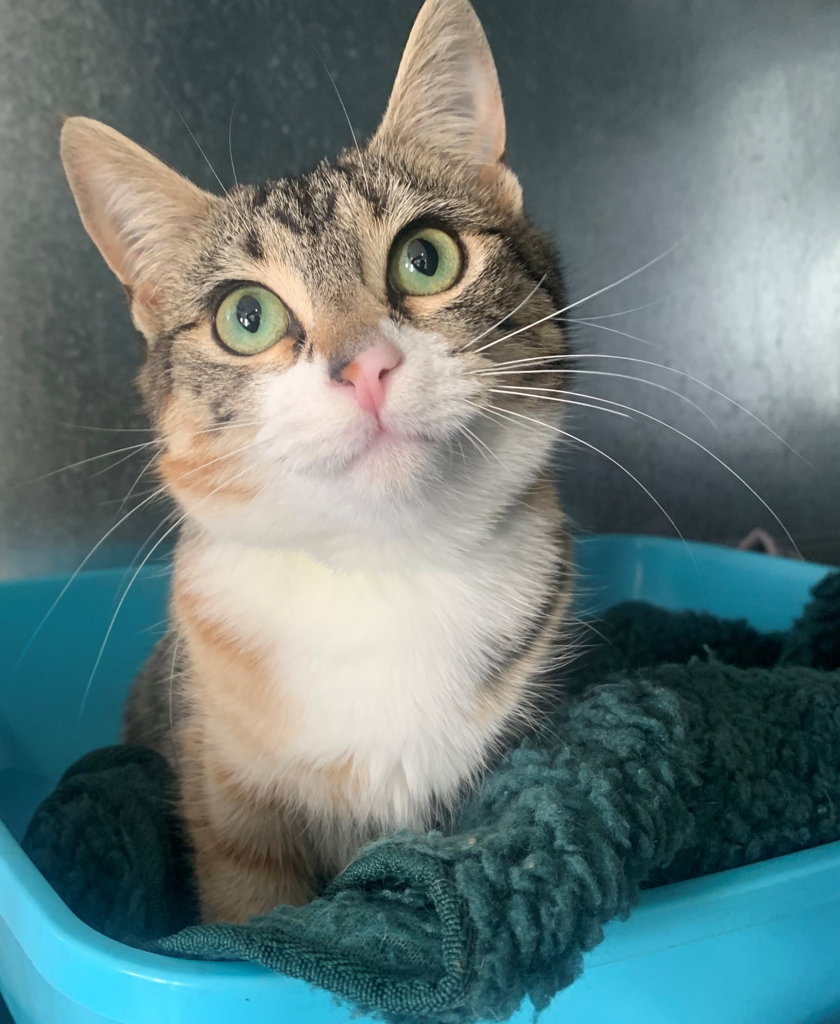 Meet the darling little Muffin. At approx. 1yr old this sweetheart is looking for a family to call her own and to welcome her into their lives. Muffin can be shy to begin with but once you've earnt her trust she is a very smoochy girl who loves to have a chat. She is a very clean girl who has also been housed with other cats and would likely be happy with a feline friend.