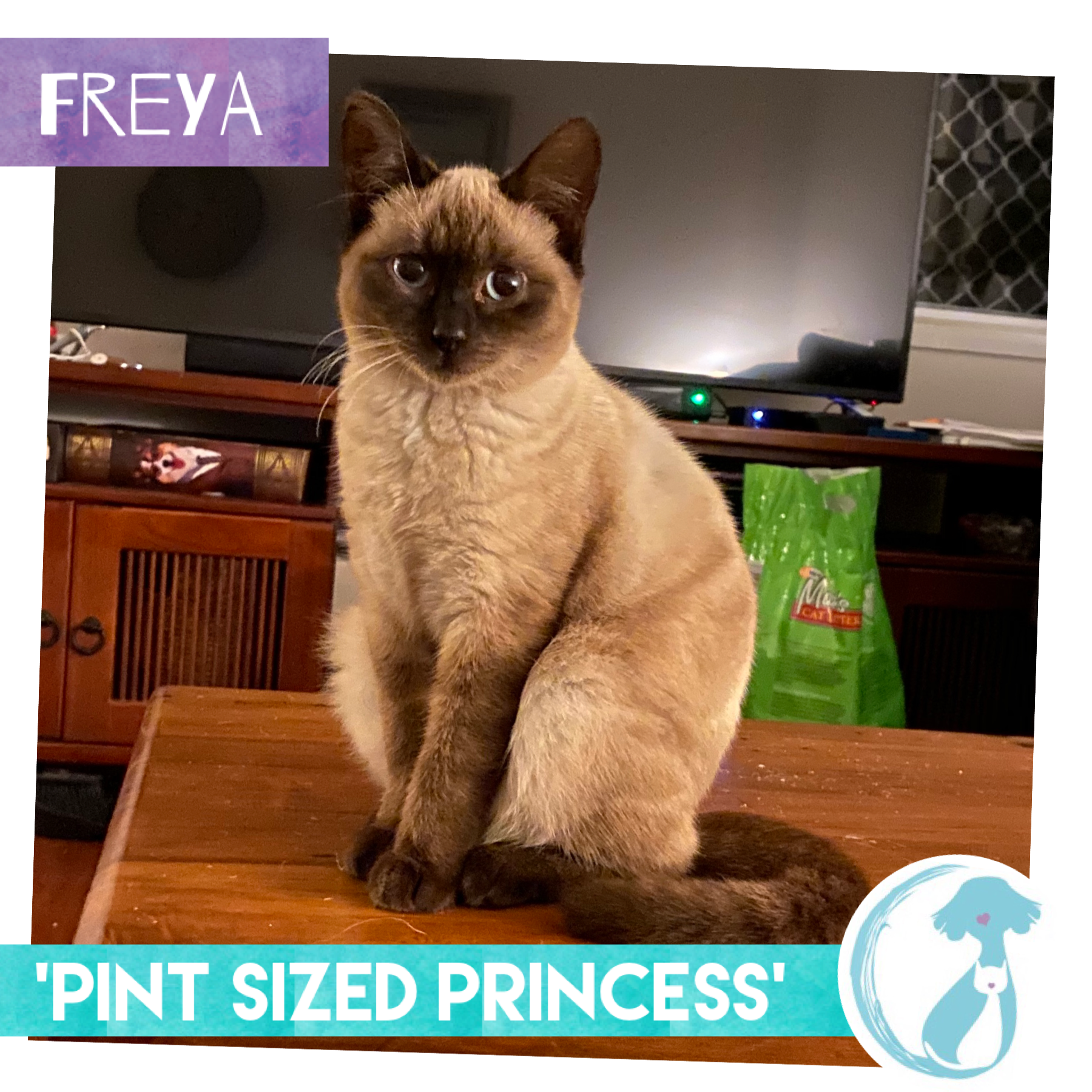 Freya can be a little timid initially and is frightened of loud noises or people approaching too quickly. She isn’t a lap cat - yet, but loves smooches, pats and ear scritches! She is a beautiful girl and her new family will fall in love.
