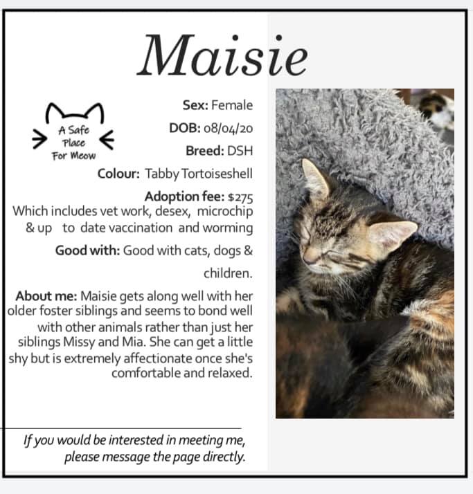 Donate to Maisie at A Safe Place For Meow via Shout