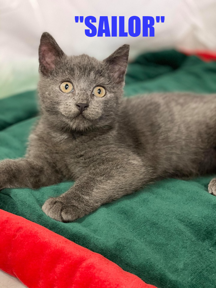 Sailor, a male Russian Blue mix, is a confident, curious and very playful boy who warms to people quickly and isn’t afraid to smother you with affection. 🥰😘