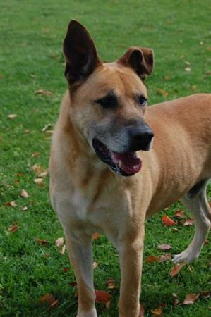 Mitch is on hold pending adoption. Mitch is a great all rounder - full of character he would be a wonderful addition to a family. Mitch is a labrador cross ridgeback who has come into care from a local animal shelter. With his one turned down ear he is very people focused and attentive he loves his food and would be a loyal and loving dog. Gentle and so easy to walk on a lead he would be a dog well suited to an older couple who just want a friendly, happy dog to take for a gentle walk each day. Mitch knows his commands, very gentle when taking food and is very responsive to voice control. He is in sound condition and not having been microchipped our vet considers he could be around five years of age. Mitch does not jump up and sits for his treats, ideally he would love to be a family dog. Being a cross labrador he is still playful and would do anything for a food reward. He has the lovely band does his back of the ridgeback and the rich gold colour of this breed. Easy to manage, dog and cat friendly this boy is a good all rounder for a family or a mature aged couple