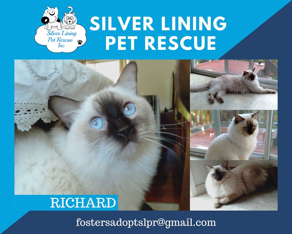 Hi! My name is Richard! I am a handsome Brown Seal Ragdoll x around 2 years old. I am a social boy and just love to have my humans around most of the time as I love company and attention. I quite like the company of men, but anyone can give me tummy rubs and pats, yes I'll take that! I am happier being an only cat as I like to lap up the limelight.