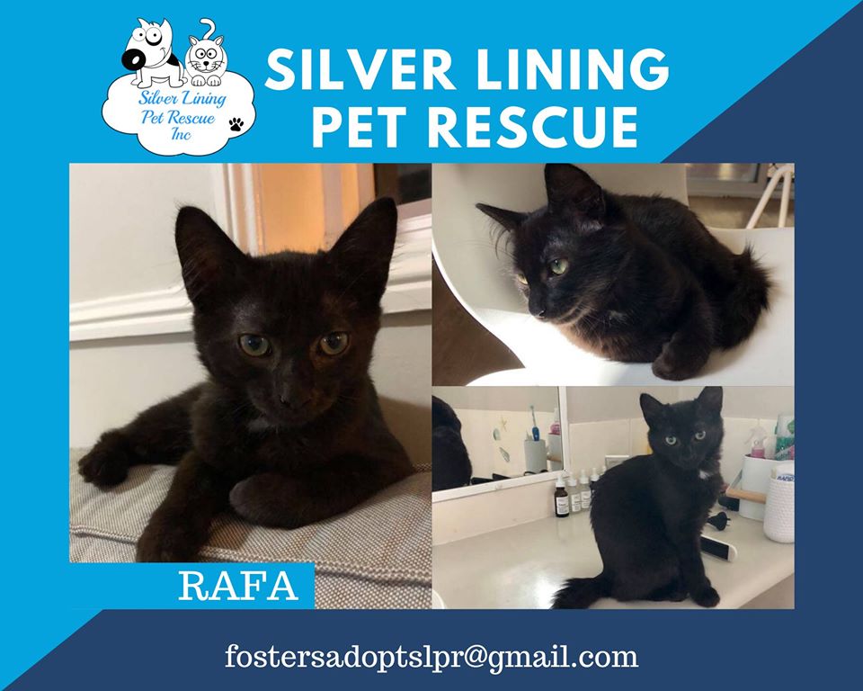 Hi guys, I’m Rafa - a playful young kitten growing into a suave, sleek young man. Like any teenage boy I have plenty of energy to burn off so when I’m not wrestling with my siblings I love exploring the house (you can tell if I’ve been somewhere I shouldn’t because I’ll emerge all dusty!), chasing after my toys and attacking my scratching post. I think I’d be happy in a forever home with children because I don’t mind a bit of boisterous play and I’m ok being picked up. I do have a soft side though and I’m always keen to get cosy in your lap. I also have the loudest purr you’ve ever heard, so you’ll know when I’m happy! Some people think black cats are bad luck but my foster parents agree that my forever family will be very lucky indeed to have me.