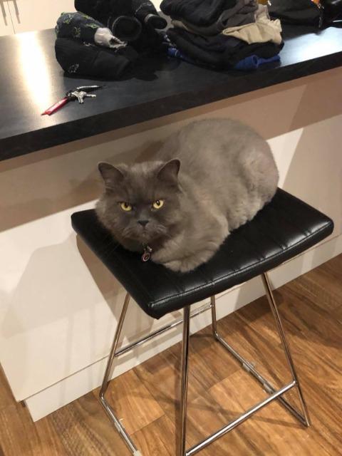 Bear Grey is very fluffy, very smoochie lap cat. His favorite thing in the world is to curl up on someone's lap, or chest. If for some reason you want some personal space (for example, because Bear Grey is rather large and is squishing you) he will curl up tight near you. Bear is very shy, and may take a few days to settle in, and will probably run away and hide whenever someone knocked on the front door until he feels really comfortable in his new home.