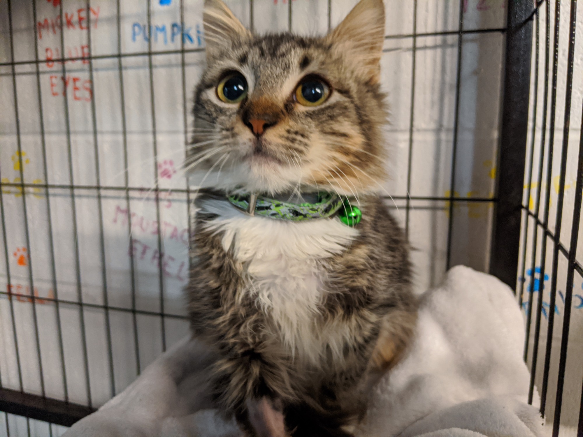Dizzy will need to be indoor only and would do best in a home without children. She has been around other cats here at the clinic.