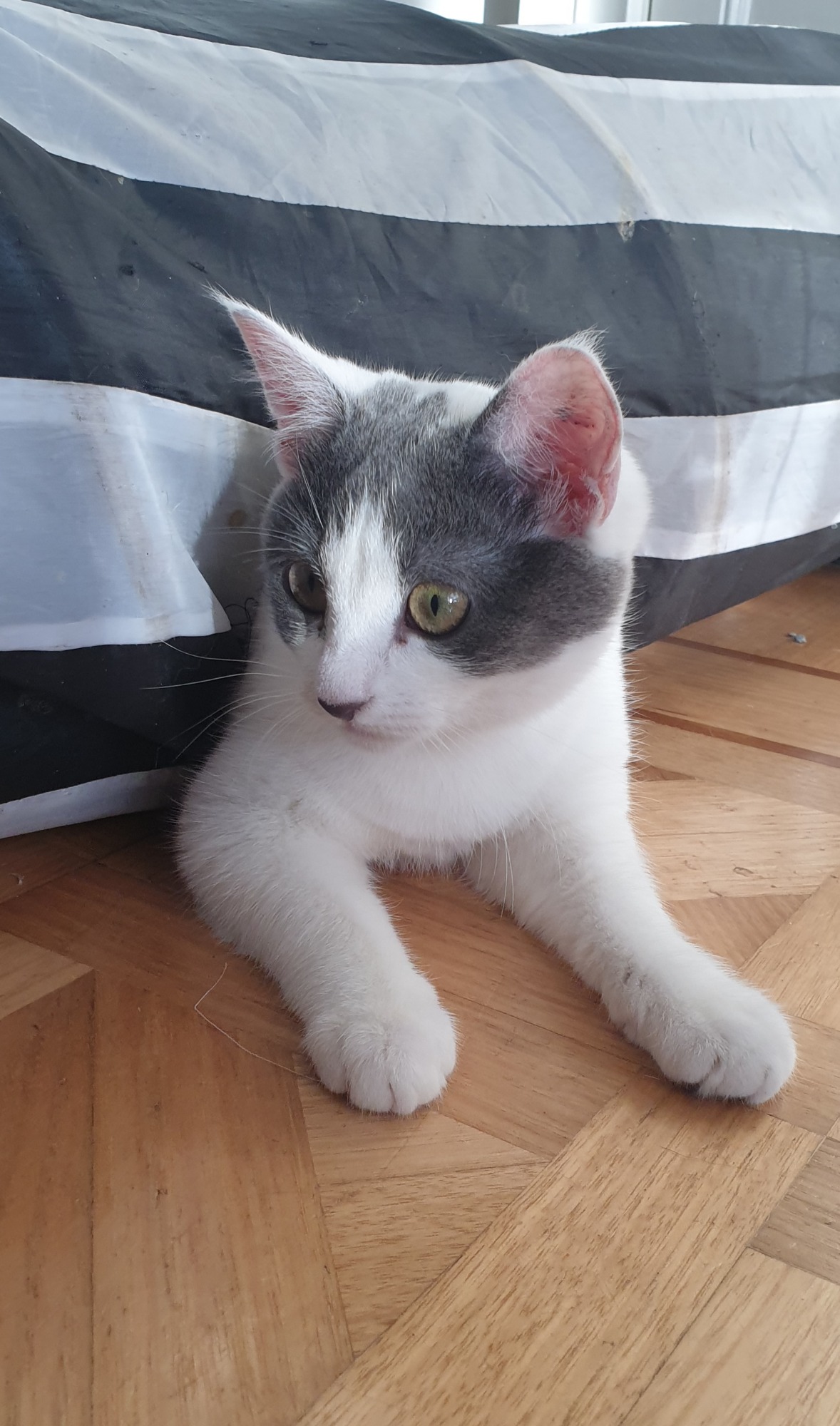 She will have you in stitches with her funny antics and cheeky looks. She loves her human affection and will gladly snuggle in for cuddles. Litter trained.