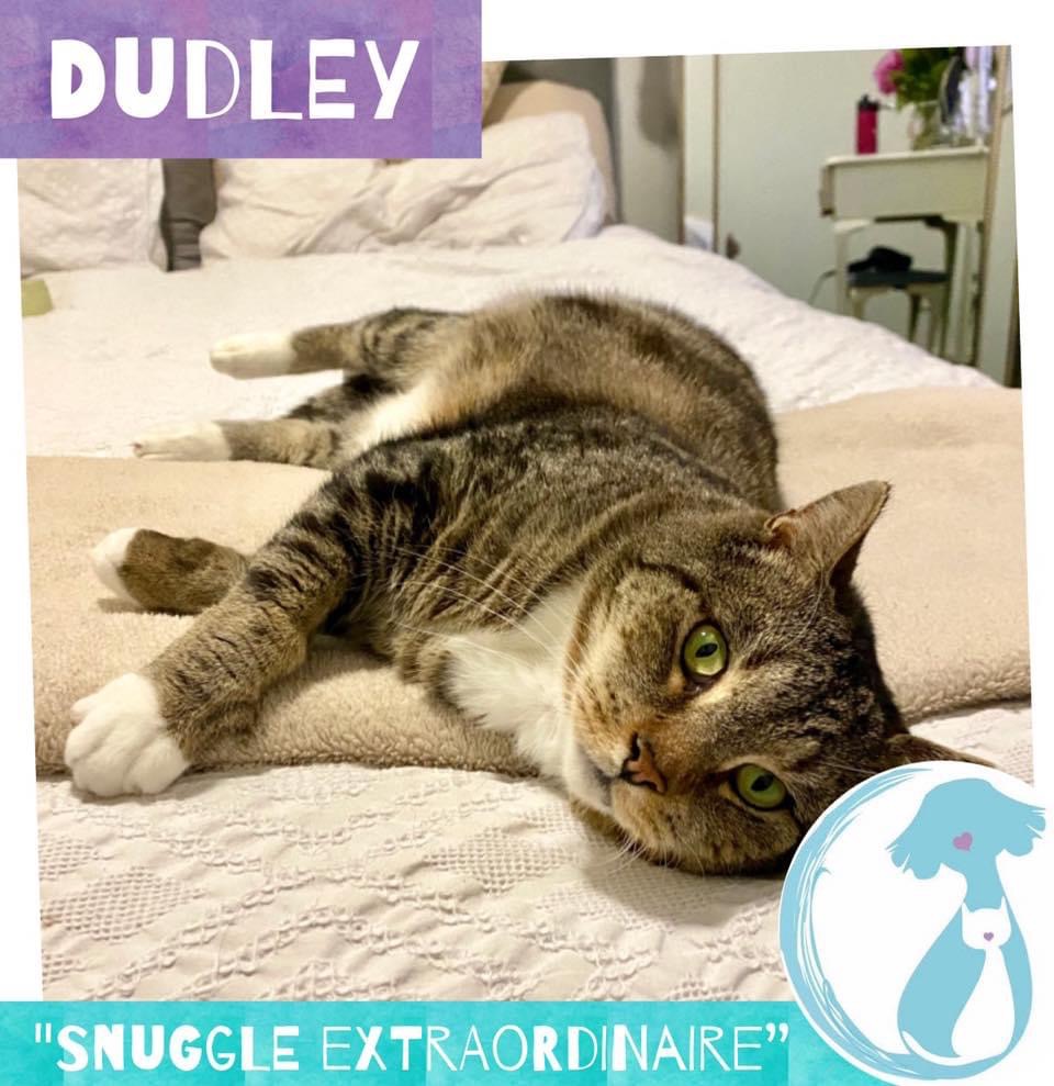 Are you searching for a lap cat? In need of a snuggle buddy to keep you feet warm at night? Well then Dudley is your guy! đ