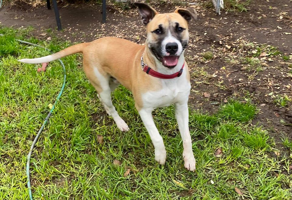 Jack is a big, boisterous Mastiff X only 12 months old . Jack last weighed in over 35kgs and is blissfully unaware of his size and strength . For that reason alone Jack wouldn’t suit a home with small children . Untested with cats but I suggest Jack would get mouthy with small animals . He currently easily engages in a chase with livestock and poultry so strict separation would be required until he learns some impulse control . Jack has no aggressive tendencies though ....he just wants to play with everyone. He gets on well with other dogs and again, just wants to romp and play.