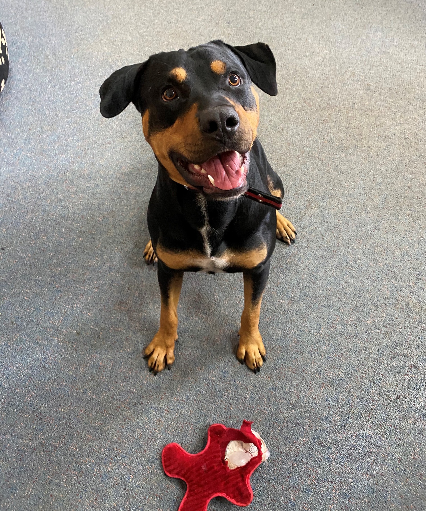Flynn is a Rottie x (presumably Kelpie) around 12 months old. Flynn will need a special home ....he’s proving to have some anxiety and needs reassurance in most situations. He’s so eager to please but he does have some boundary issues when it comes to getting human attention and affection. He will wrap himself around you and just doesn’t want to let go . He’s a bit nervous and timid around other dogs and tends to hang back when running with our crew .