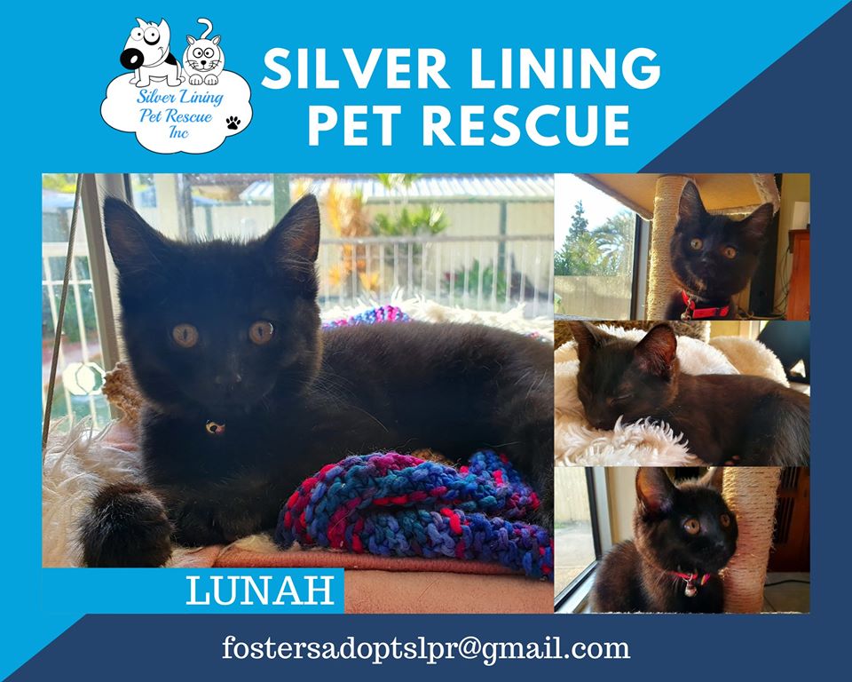This is little Lunah! She is tiny and sleek. She will and can hide just about anywhere, she is very quick and and cheeky. She is a lap cat when she wants to be. She loves to play with balls that make noise and loves to climb and hide.