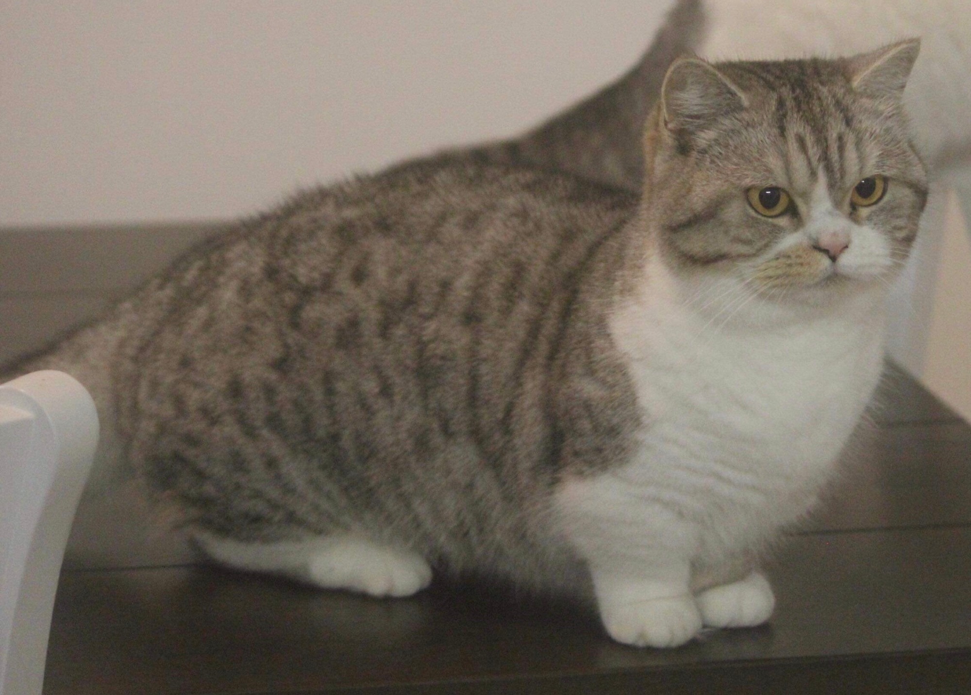 As a true munchkin Cherry has little legs (they are often referred to as the dachshund of the feline world) and don’t let those little legs fool you – when Cherry wants she can definitely get up into places (Beds, coffee tables, dining tables, window sills)