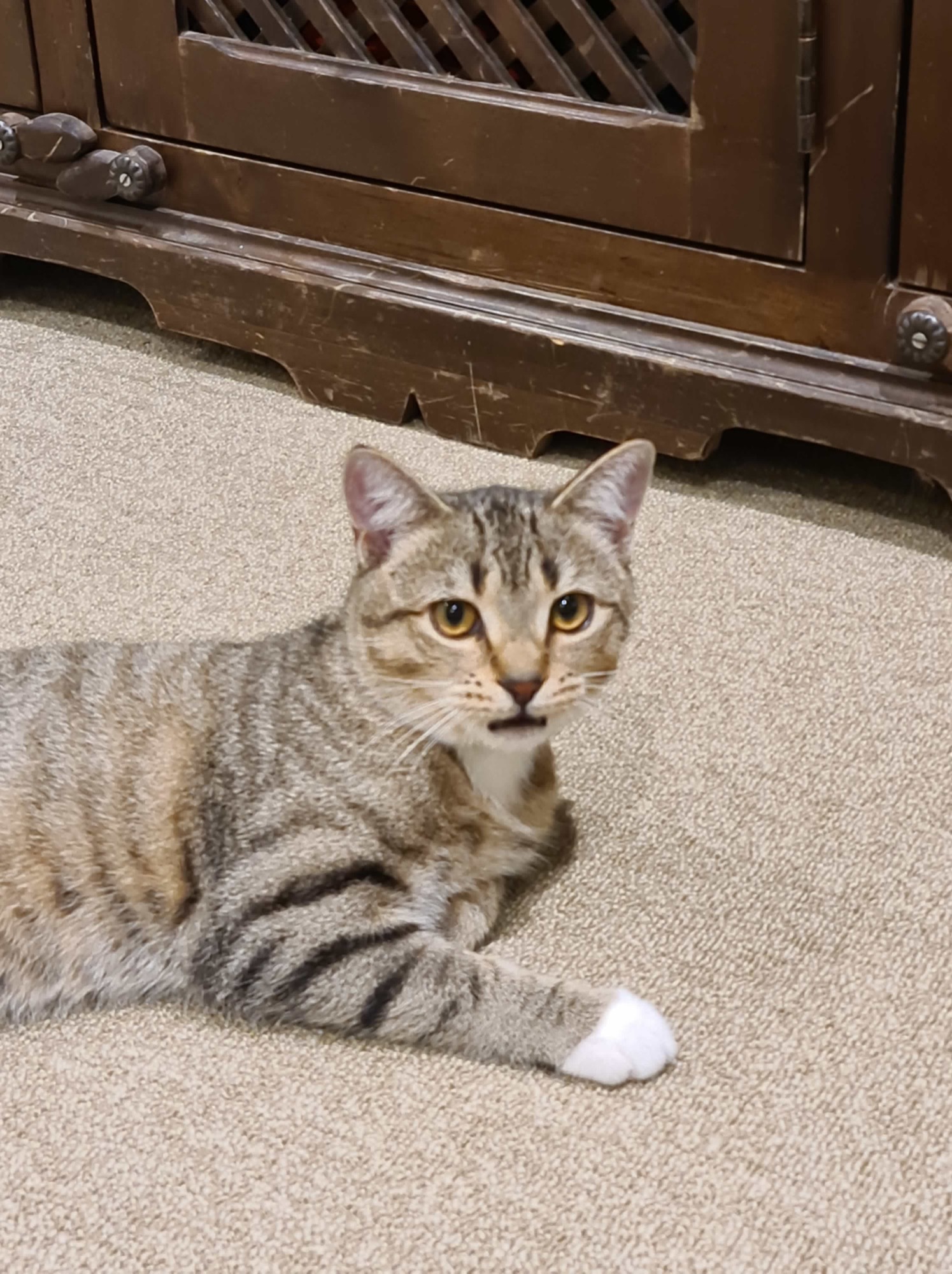 Tibbs is a sweet 8-12month old, desexed male. He came to me with a broken right femur which has been surgically fixed and is healing remarkably well. Tibbs comes fully vaccinated, microchipped and up to date on flea and worming treatments. Tibbs is completely litter trained and is a very clean boy.