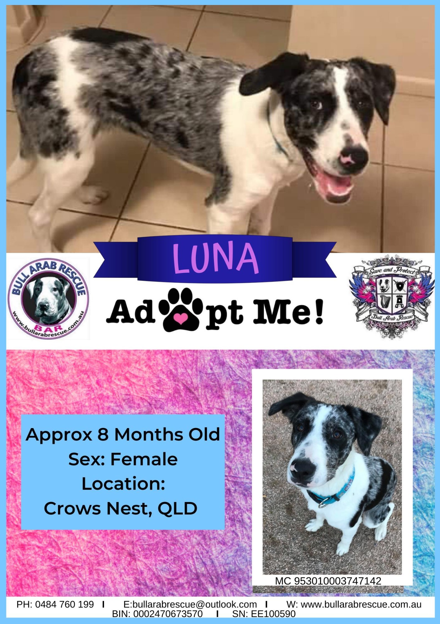 To learn more about Luna, please email bullarabrescue@outlook.com
