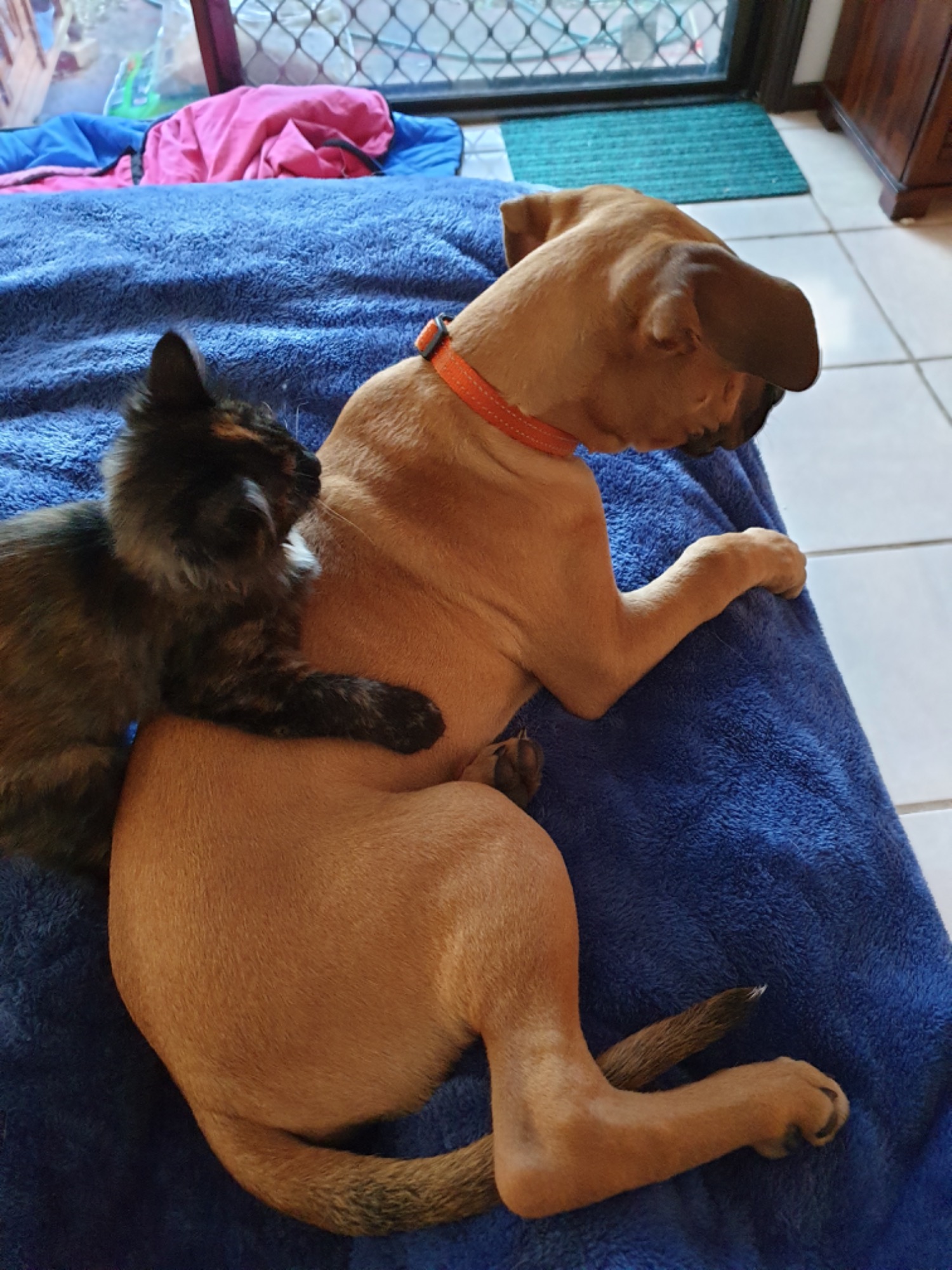 Kovi is very affectionate and we have morning bed time when he comes onto the bed with our other dog and cat. He knows this is calm time and curls up in a ball and has cuddles with us and the other animals.