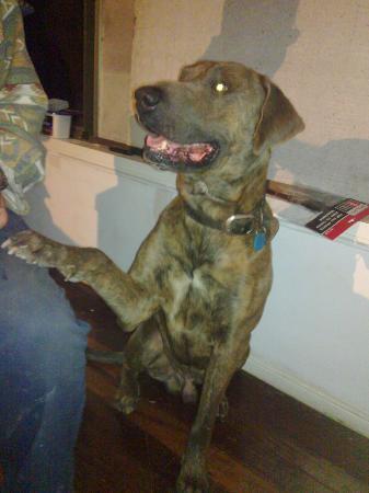Max is a gentle giant. His manners are impeccable, and while he is big, he's not boofy. He sits on command and will offer a paw to shake in trade for a little treat. He takes food gently from your hand and doesn't jump up on you or try to crowd you. His bark is deep and loud, yet he seems to be very much all bark and no bite. He plays well with the other dogs here, hasn't bothered the horses or cattle and has only tried to play with the cats. He is mad keen on balls, and will happily spend as long chasing them and bringing them back as you want to spend on throwing them. He would make a wonderful companion for anyone looking for a sweet, handsome bodyguard