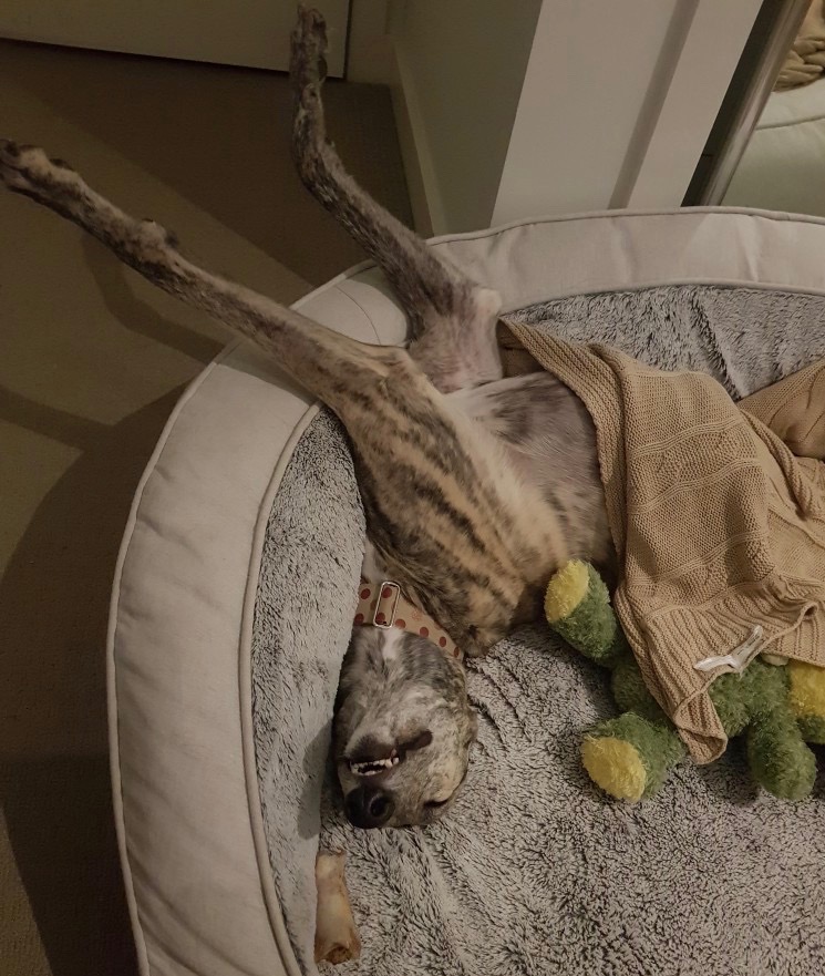 Dogs are pack animals and Greyhounds, in particular, are very familiar with being surrounded by other dogs in their racing kennel environment. For this reason, when left alone without people or other dogs for company, they can be prone to separation anxiety which can manifest in destructive and/or noisy behaviour. Yes, they may "grow out" of it after a few weeks in their new home, but why put the dog through that stress to ultimately live all day alone, while everyone is at work? As a result we do not rehome dogs into households where they are left on their own for more than 4 hours per day, without either people or another dog for company.