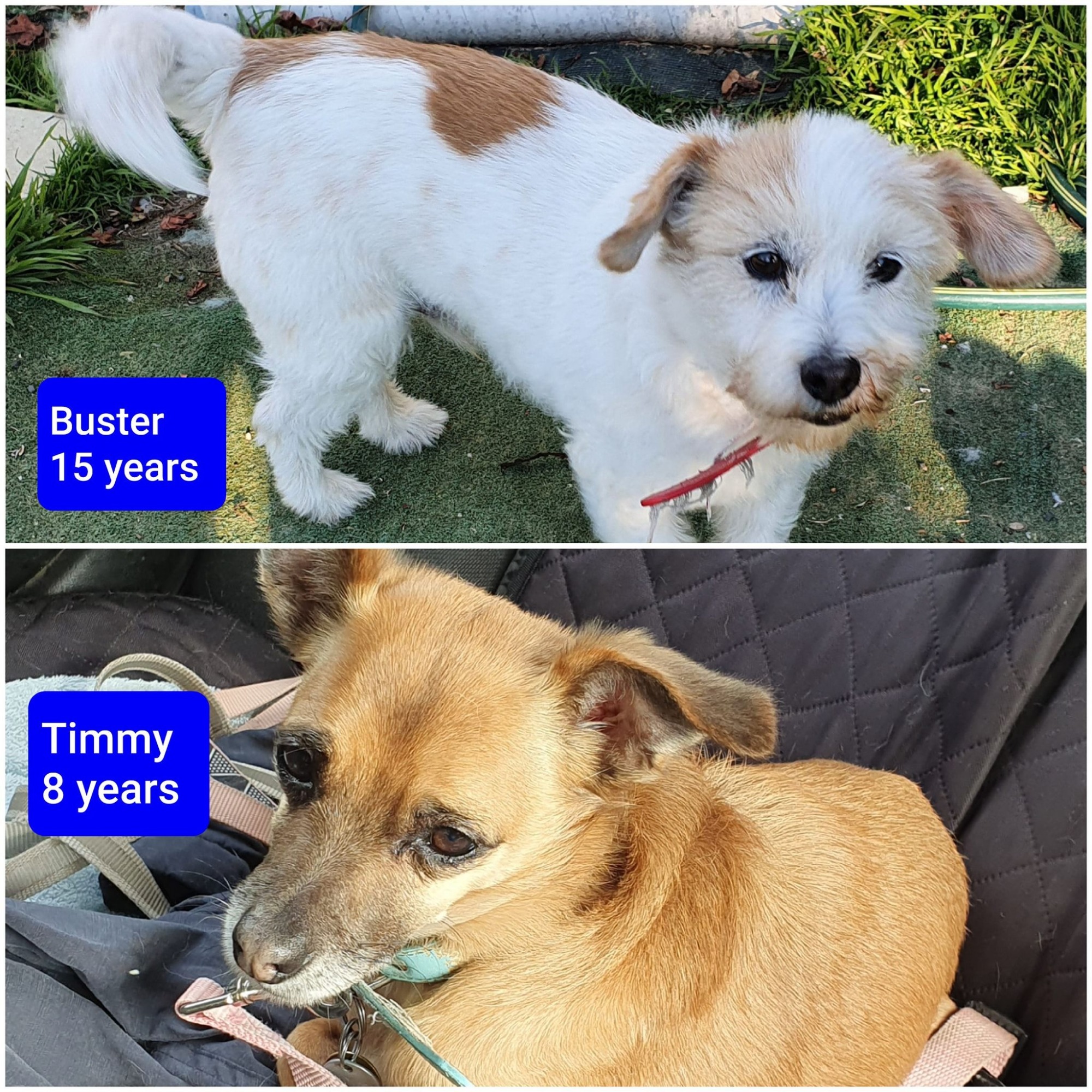 We are looking for a loving retirement home where they can live their lives out. Buster is reliant on Timmy for reassurance. It is inevitiable Timmy will outlive Buster but we believe he will be ok with this.