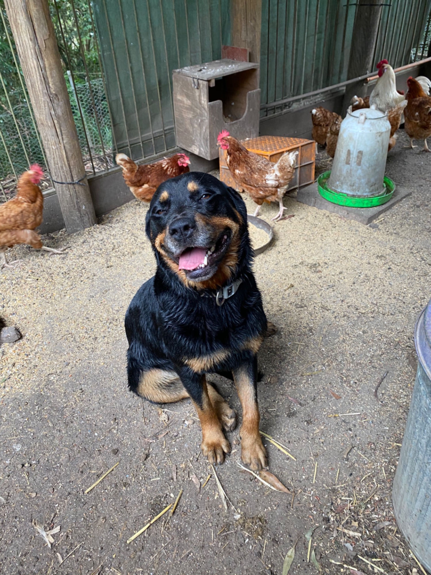 My name is Lexa and I am 4yo. Also small for my breed a mere 27kg. My foster mum says I am the happiest Rotti she has ever meet, and she has met a lot of dogs. I love dogs and to play rumble games. I am living with 8 other foster dogs and we are have lots of fun. I love the toys here and I am happy to share. I have lived with cats and chickens.
