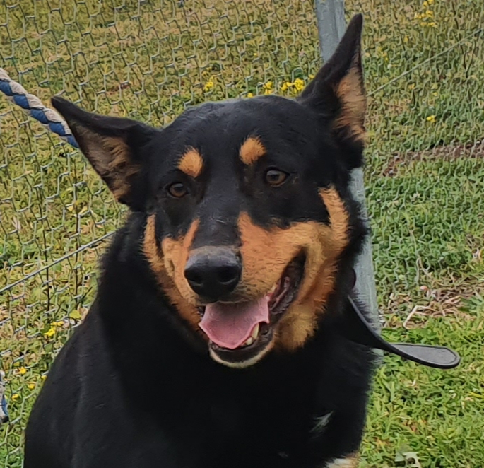He gets along well with the other dogs in care - a grumpy older female kelpie and an in-your-face kelpie youngster.