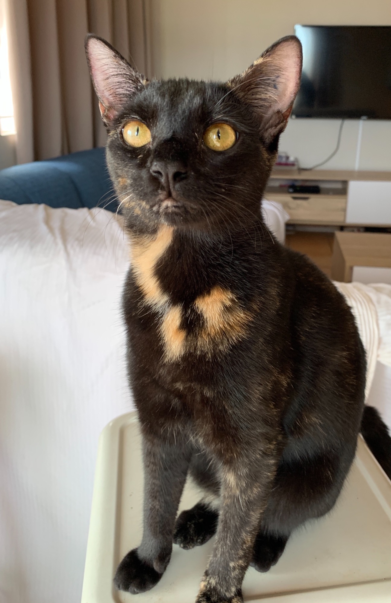 Mercedes is more like a small dog then a kitten and likes to follow her foster dad around the house. She has the cutest meow while she’s waiting for her food to be prepared and is never usually far from her sister. She gets along well with dogs and other cats.