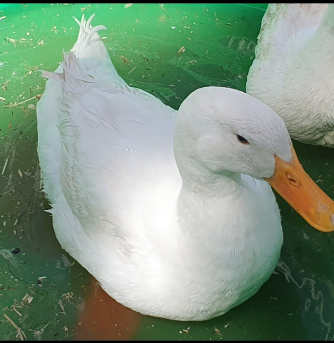 Aquaduckt, or "Ducko" for short, is a handsome pekin drake.