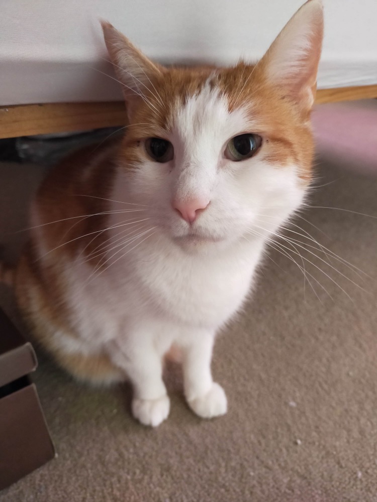 Grimm loves hanging out on the window sill, exploring, a good cheek scratch and loves his food! He is very chatty and will sing for you when he hears you approaching the door. Doesn't mind being picked up and cuddled for a short time.