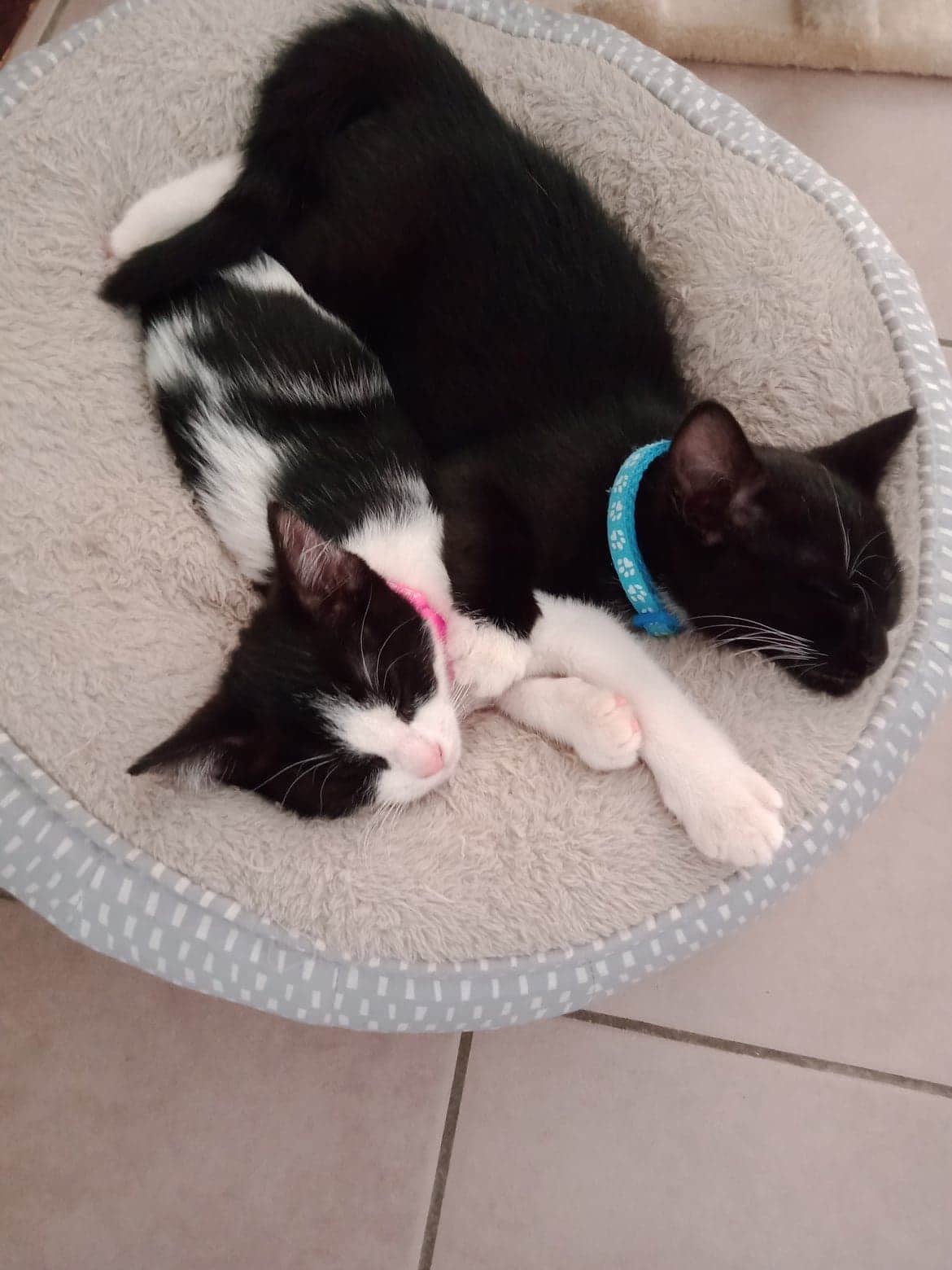 Shadow and Daisy are a Brother and Sister pair who were born in foster care after their Mum was rescued, and soon after gave birth. There were 3 siblings but this pair are basically joined at the hip. They do everything together and are just the sweetest, gentlest pair of kittens ever. Perhaps because they have always been in care, they are super affectionate to humans and all other animals alike. They love to climb on to a lap (together of course) and snuggle in for as long as permitted, but if you have to get up, they will happily remain on the couch and continue their nap. Little Daisy loves standing on her hind legs and can be seen shadow boxing or trying to hold a ball or toy in her front paws. Both of them come up to you and tap you on the leg wanting to be picked up and cuddled. They both like to sleep with their humans, sometimes on the pillow next to you, or on colder nights slink down under the covers and can be felt snuggling in for warmth. Typical kittens they love to chase balls, each other, and of course playing in the tunnel. They play for hours but once they run out of steam, they can be found cuddled up together in whichever bed happens to be vacant at the time. As a foster carer I have cared for many cats and kittens but these two would have to be up there for being the most lovable little bundles of fluff I have ever encountered. Even in their wrestles they seem to be so gentle and caring of each other. It would be a dream come true if they could be adopted out and stay together always.