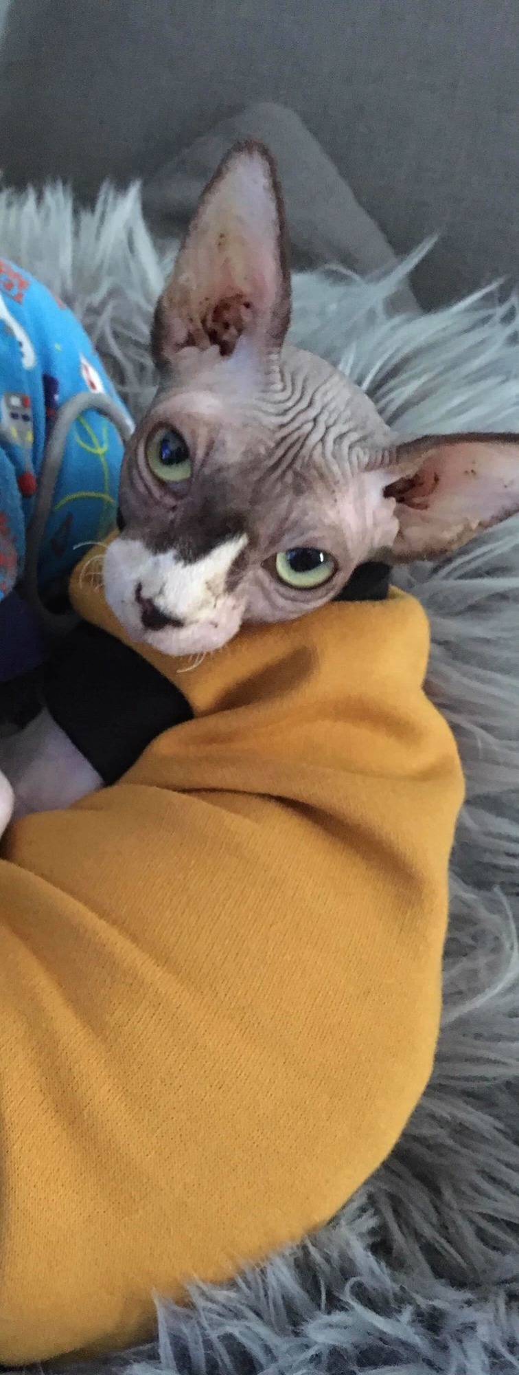 Norris is a quiet and sweet natured 18 month old male Sphynx cat who is looking for his forever home.