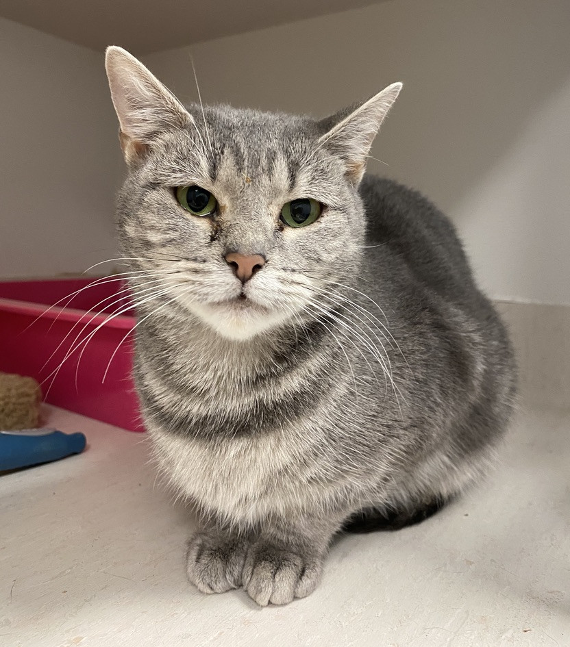 Willow is very shy at first and very unsure of new situations which can make her nervous. Because of this her perfect home would be a mature household with patient, relaxed guardians who will let her settle in at her own speed. At the moment she doesn’t tolerate being picked up (like most cats) but once she adjusts to a new environment and realises that it is a stable, permanent place with loving people, we believe she will start to relax and soften. It will be a case of letting her come to you in her own time rather than expecting her to be the perfect instant loving cat.