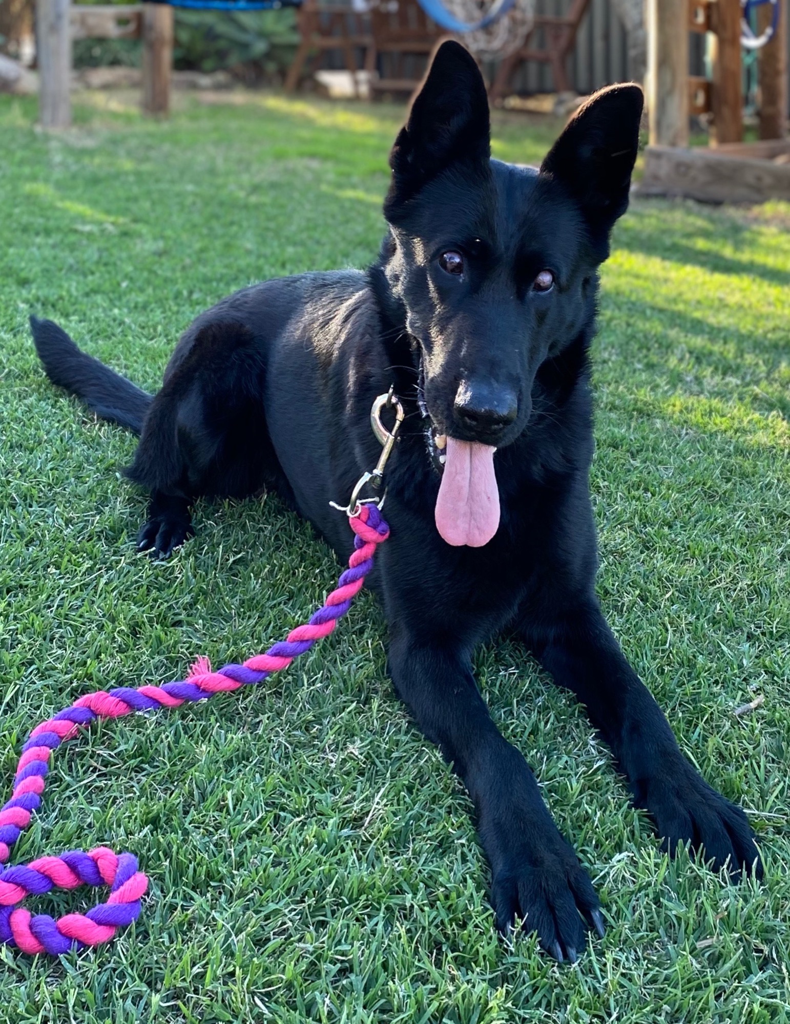 Nyx is just beautiful, she is super smart, fully crate trained and is working super hard on her queues to relearn her new life. She absolutely loves her toys and balls she has definitely captured our hearts here.