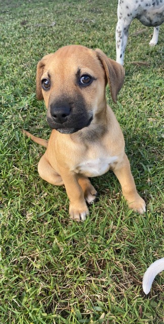 A content happy girl which is exactly how she got her name! She is the first pup to come calmly to you with a WAGGING tail!! A total sweetheart who knows how to charm!
