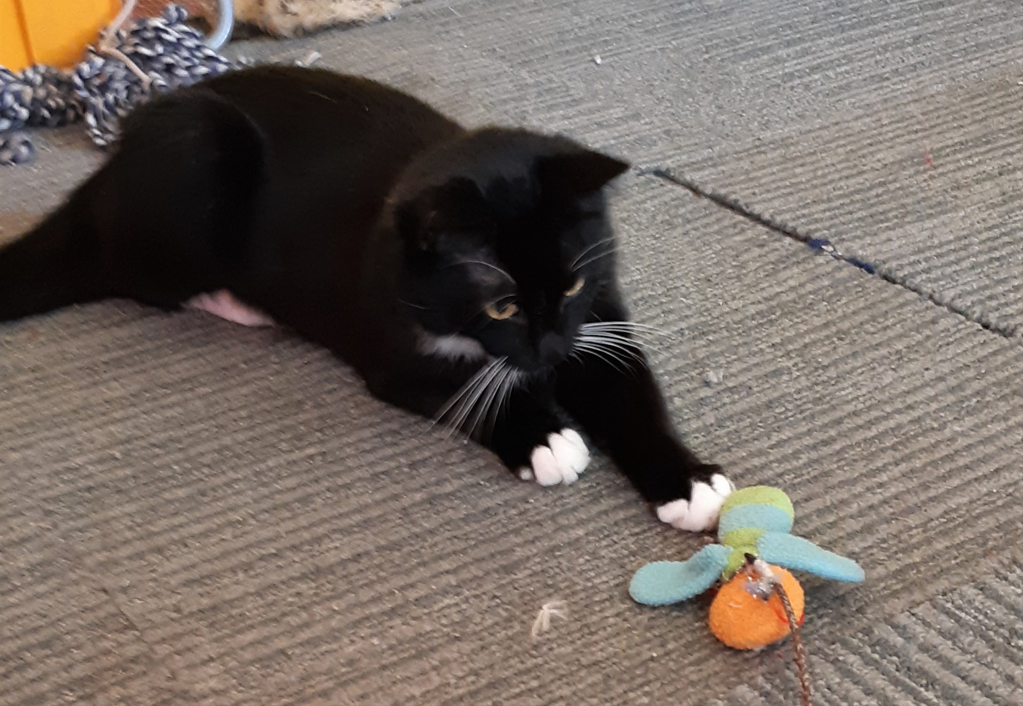 Lennox is always looking for the next thing to do and he rushes around checking things out. You will be able to bond with him through play as he loves chasing wand toys and he absolutely loves food but his favourite is cat milk!