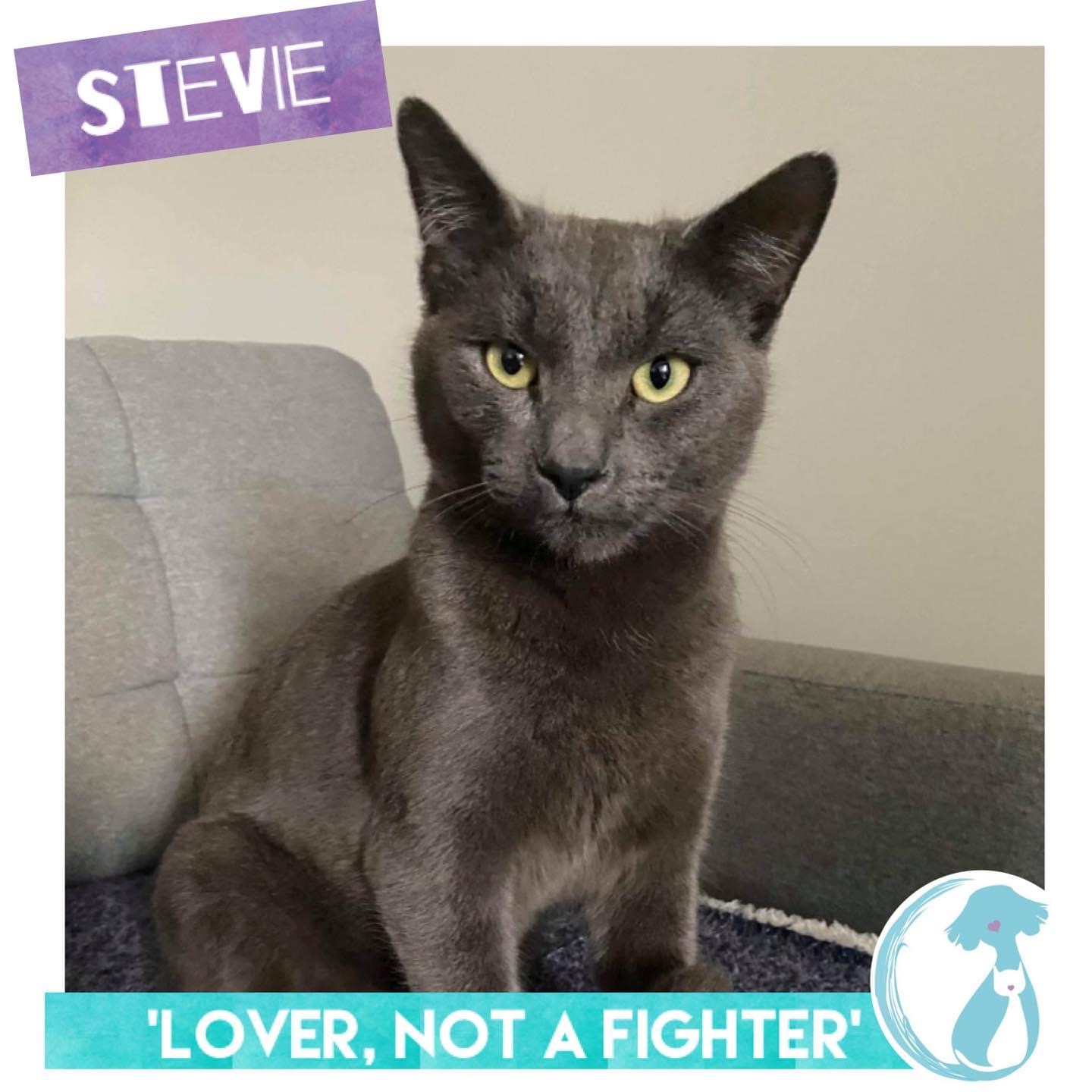 Stevie is a sensitive new age guy. He loves a good cuddle or pat but isn’t really keen on playing or loud noises.