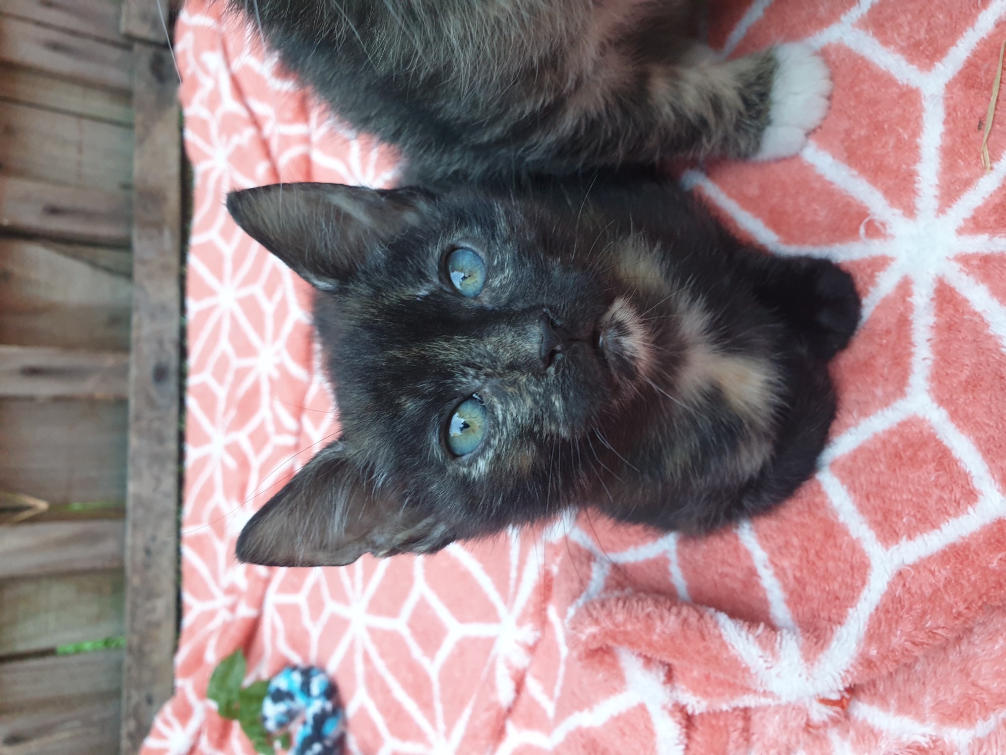 River is a very outgoing and friendly little girl, who is always after your attention. She is also quite independent, and happy to play with her kitty friends in his foster home. She is very well socialised with other animals, and lives with both cats, and dogs in her foster home. She is looking for a home that's after a cuddly little girl, and a home that also has another kitty friend.