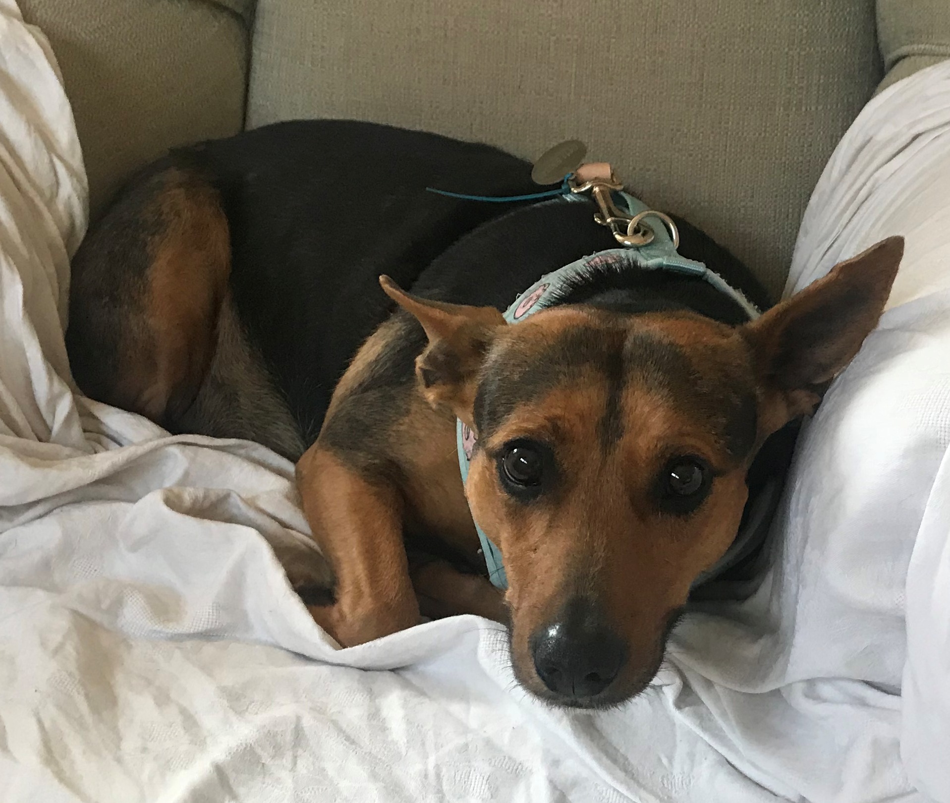 She was born with a stumpy tail that wiggles with excitement at the hope of a cuddle.