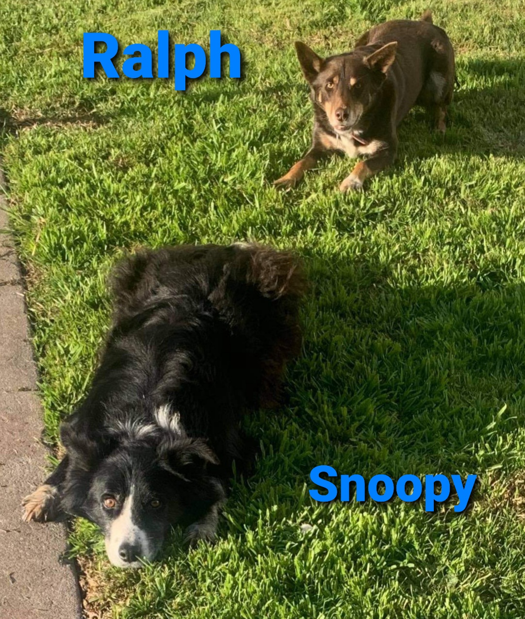 Our bonded working breed boys are looking for a "life time" home. These boys are great entertainment and still very active for their ages. Snoopy is 11 years old and Ralph is 9 years old.