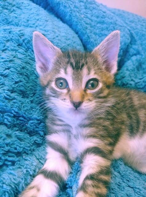 Beautiful Shiso; complete with white eye liner and matching white socks - is looking for the family of her dreams. A lovely tabby and white tabby; cheeky; playful and in care with her litter mates. Hand reared from one week of age - this kitten is used to humans; being handled and in care with older children and resident cats.