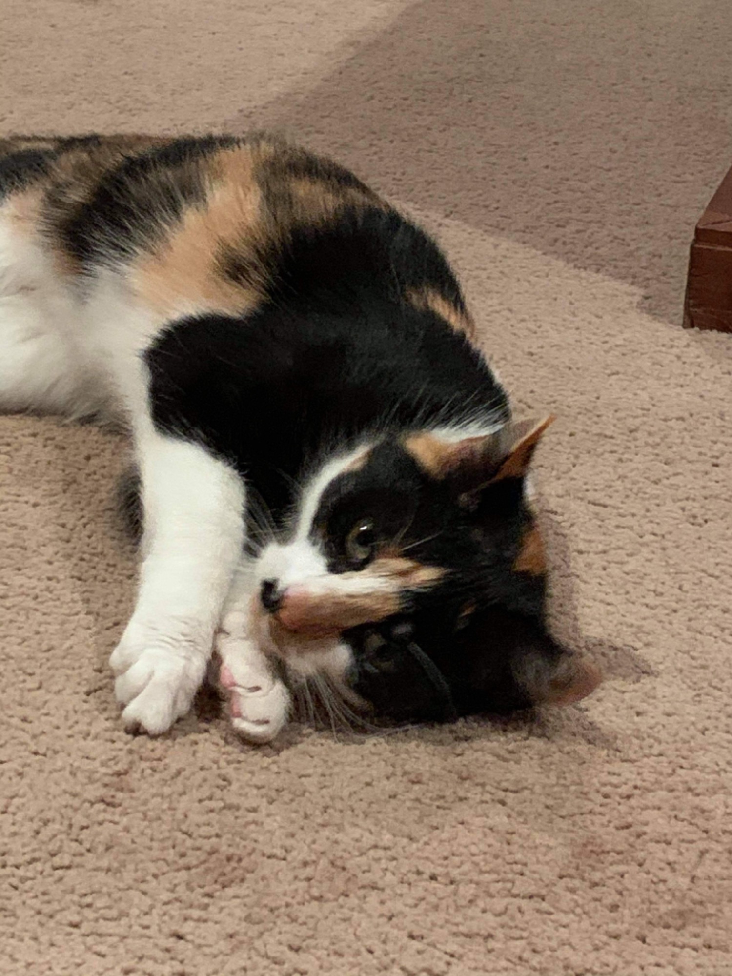 Rosie initially may come across as a little shy but in no time she will be looking for pats and head rubs and will take over any rug you may have laying around!
