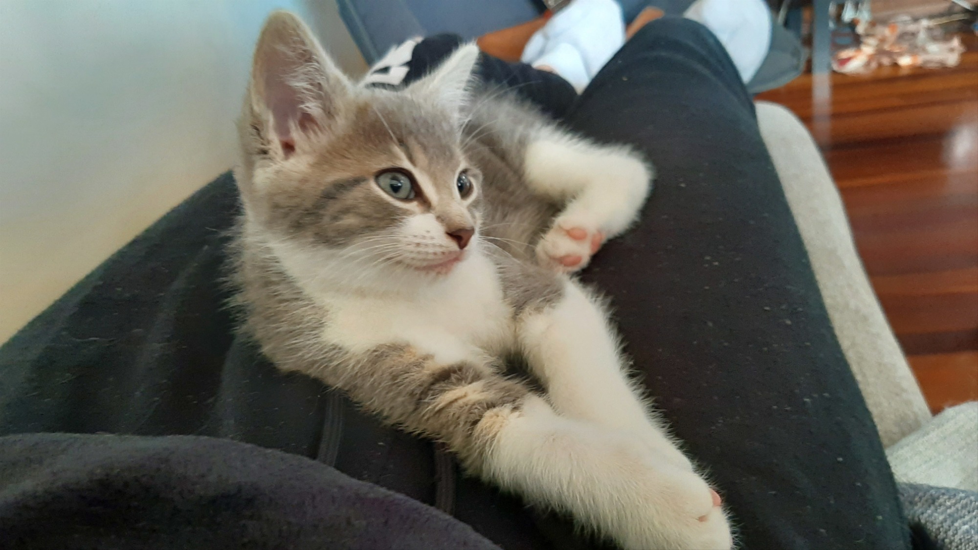 Houdini is a friendly affectionate little boy and a lap cat. He and his sister follow their foster carers round the house eager to keep up with events. He will fit in easily with other friendly cats and would be happiest with a cat friend. Houdini is brother to Pebbles (listed separately).