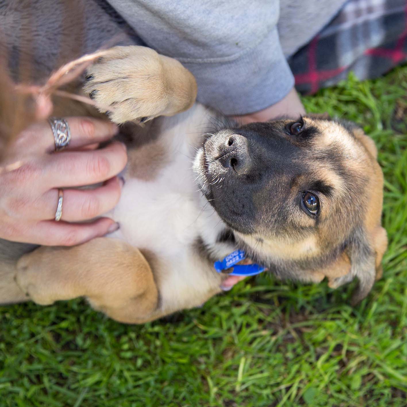 Max loves to run and play tug-o-war with his foster brothers and sisters and the kids he lives with. He will be a wonderful family dog. As he's still a puppy, a family with kids over 12 would be best. He sleeps inside snuggled with the other puppies so will need to be welcome inside in his forever home.