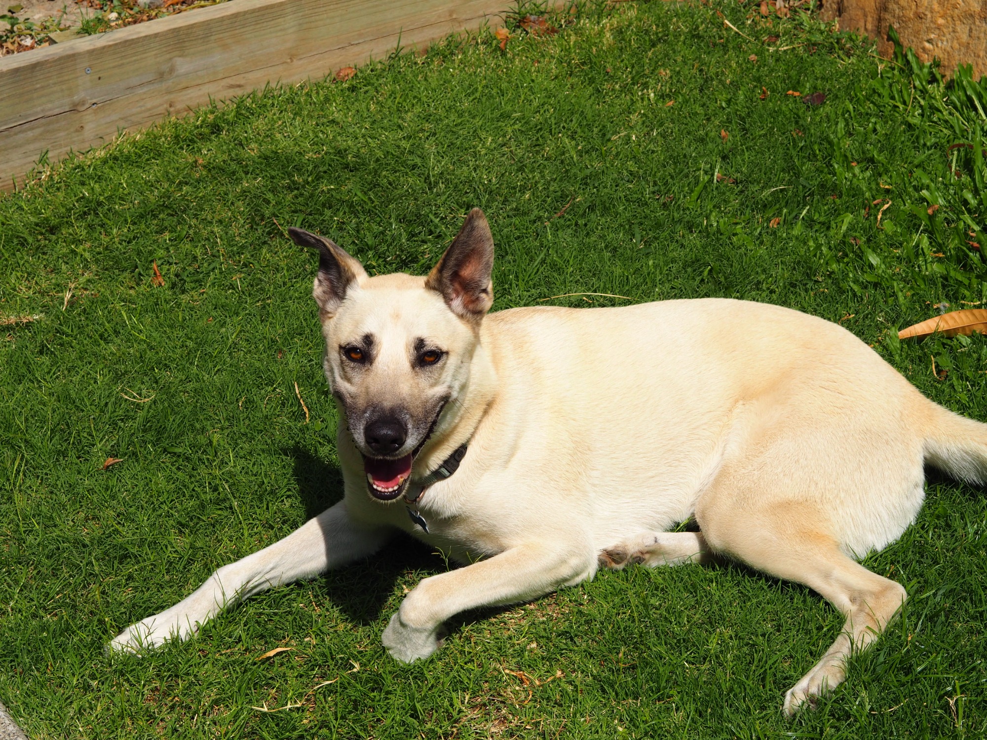 I don’t mind being in the yard while you're out as long as it's safe and has 7ft fencing. I'll need at least one good walk each day and some toys for mental stimulation if you're out. I love to sunbake preferably on the lawn. I might also find a shady spot in a garden bed to sleep.