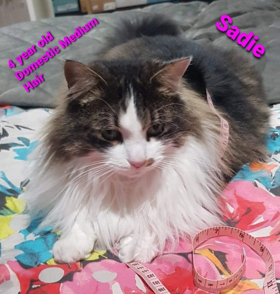 Our big beautiful Domestic Medium Hair Cat Sadie is ready to start looking for her "life time" home. Sadie needs to be a total indoor cat as that is all she has known. She has not previously lived with other cats so an only cat home would also be best.