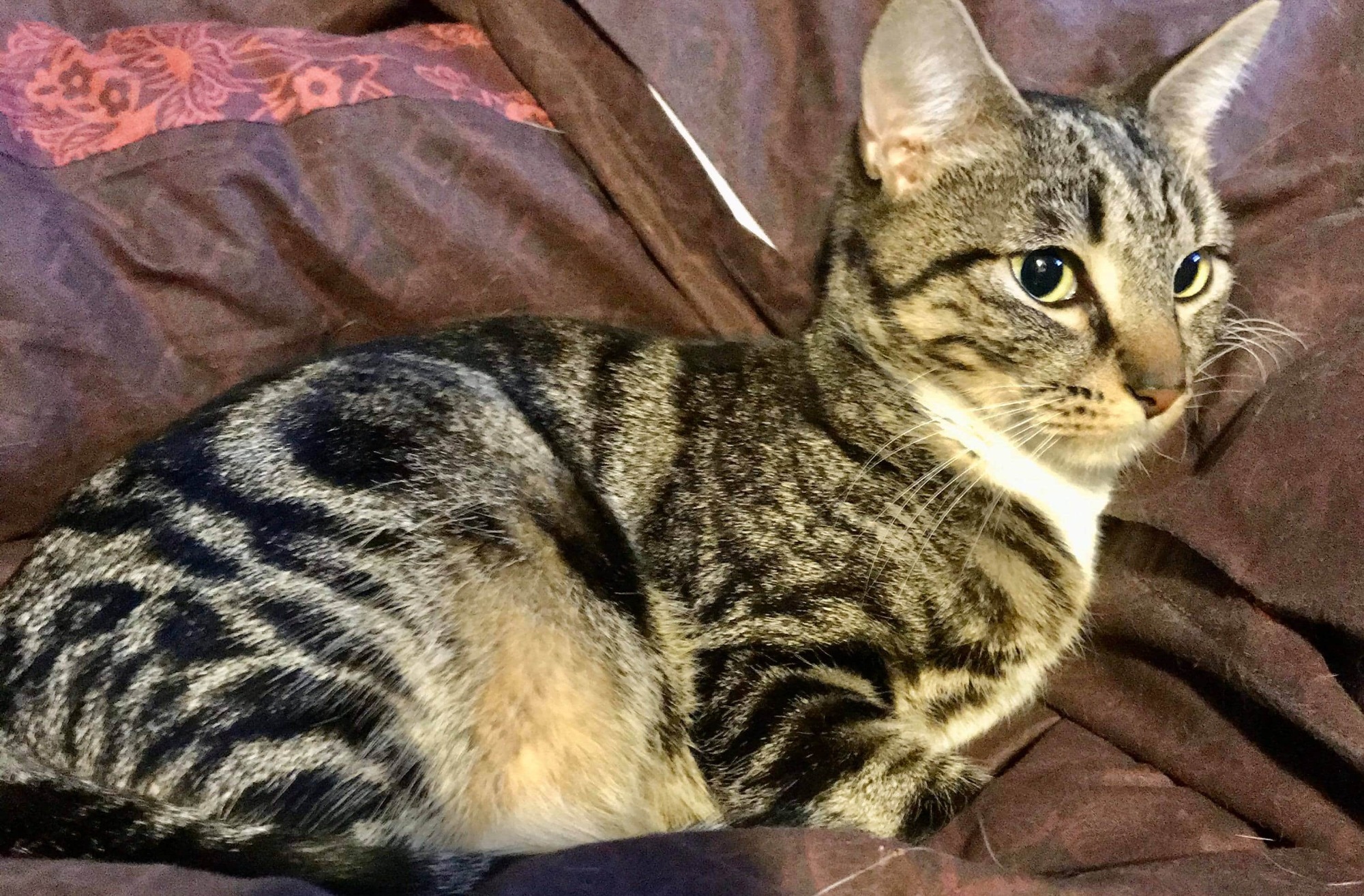 Belle is a pound rescue girl, who was miserable there. Since bringing her into our care, she has become the happy, social cat we always knew was in there. She is good with other cats, and untested with dogs.
