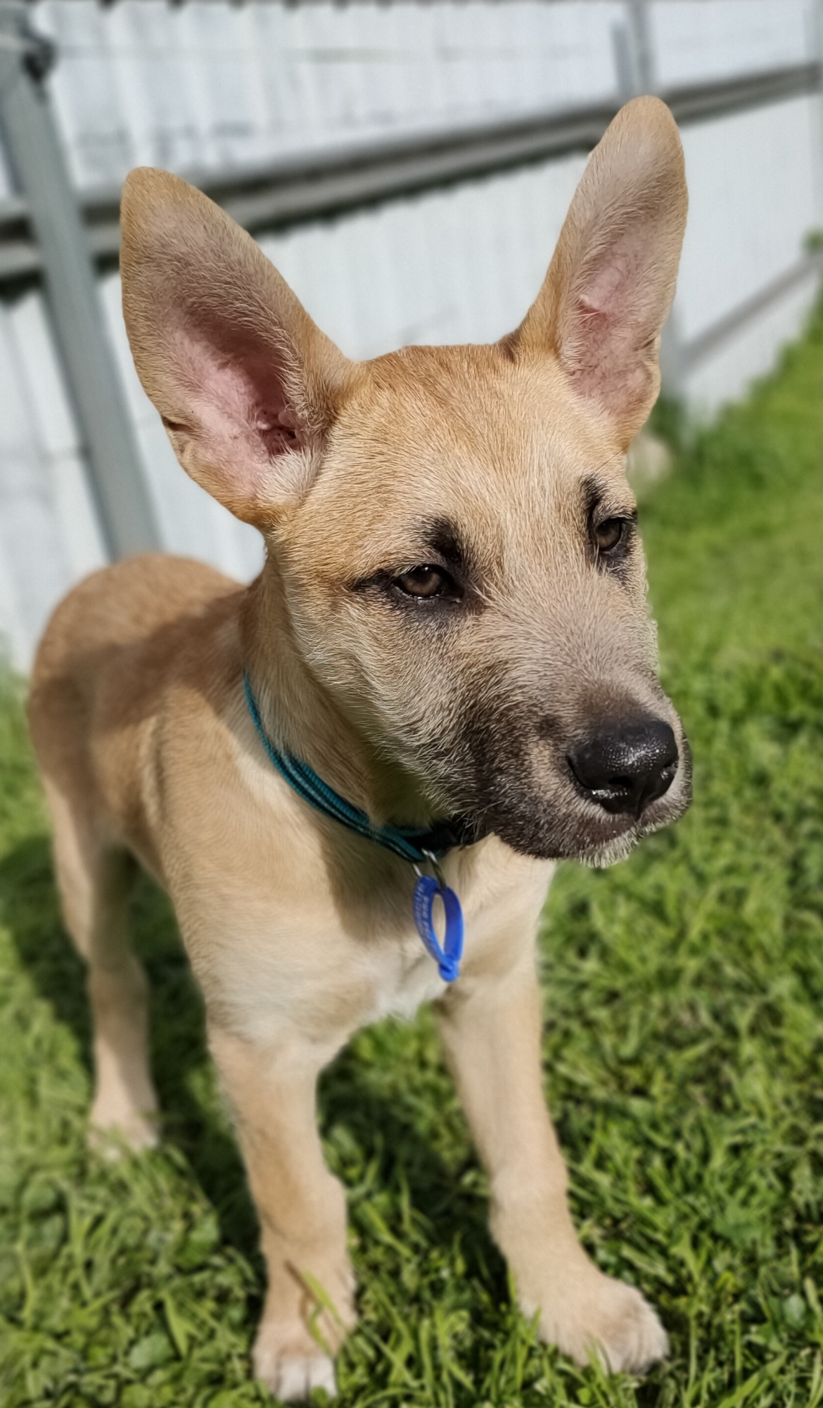Bailey has only been in care a short time but has shown some serious talent for learning new things. He has mastered sit for his meals, and is now learning to wait until told to eat. He sits on command and has learnt to go to his bed, lay down and stay while his foster mum is working from home. He is mastering the art of sleeping in a crate and going to it when told. Bailey would benefit from someone with breed experience to further his education and give him the best all round start possible. This very smart pup will go a long way in the right hands.