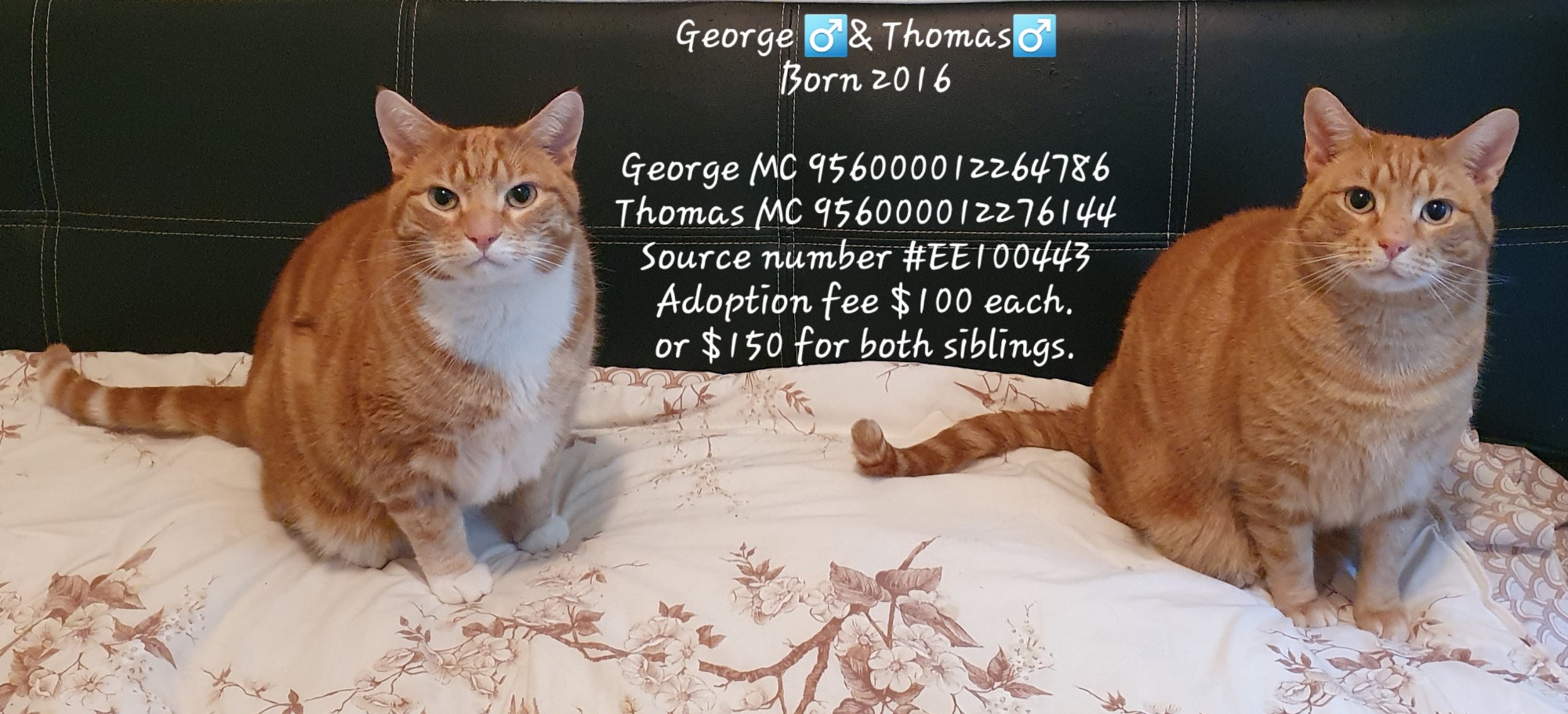 CARMAR will donate a BIG bag of Hills Urinary Care dry cat food to whomever the luck person or family are that adopt these two Big ginger teadybears.