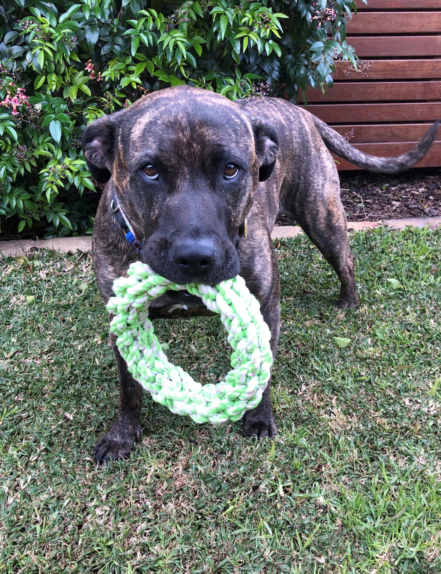 I enjoy going for walks and have great handler focus and walk calmly on a lead. I love rides in the car, swimming at the beach, playing with my toys, belly rubs and cuddles on the couch. Learning new tricks is not a problem for me as long as there is a treat in the offering.