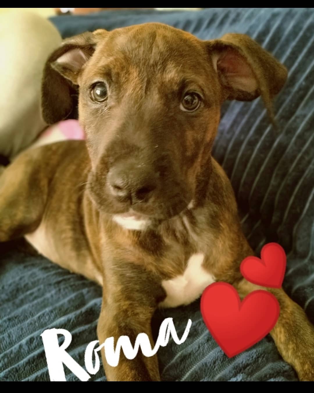 Roma has been diagnosed with a rolling eyelid. This may need surgical attention as she matures. Her new family must be prepared to cover additional vet costs associated with this condition and be willing to treat accordingly.